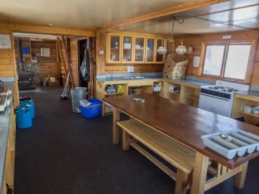 Location: At Kaslo Lake in Kokanee Glacier Provincial Park near Nelson. Winter access is via helicopter. Operated By: Alpine Club of Canada Best For: Hiking, scrambling, mountaineering, ski touring Sleeps: 12-20 Booking: Reservations required. Book online . Reserve six months in advance. Winter bookings are via a lottery . Cost: $25/person/night or $50/night/family of two adults and two children. More Info : Alpine Club of Canada and Kokanee Glacier Provincial Park .