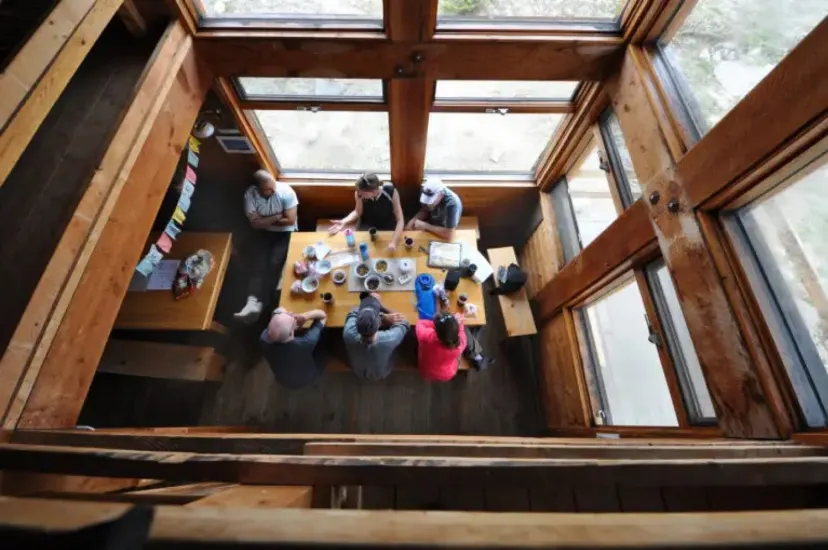 Location: In the Northern Selkirk Mountains north of Glacier National Park at the base of Mount Sir Sandford. Access via helicopter. Operated By: Alpine Club of Canada Best For: Mountaineering, ski touring Sleeps: 6 Booking: Reservations required. Book online . Non-members can reserve 90 days in advance. ACC Members can reserve 180 days in advance. Cost: $60 for non-members. $50 for ACC members. More Info : Alpine Club of Canada