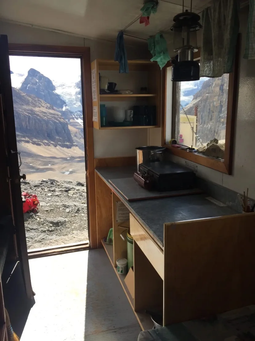 Location: On the shoulder of Mount Little Alberta in Jasper National Park. Access requires glacier travel. Operated By: Alpine Club of Canada Best For: Scrambling, mountaineering, rock climbing Sleeps: 6 Booking: Reservations required. Book online . Non-members can reserve 90 days in advance. ACC Members can reserve 180 days in advance. Cost: $60/person/night for non-members. $50/person/night for ACC members. More Info : Alpine Club of Canada and Jasper National Park .