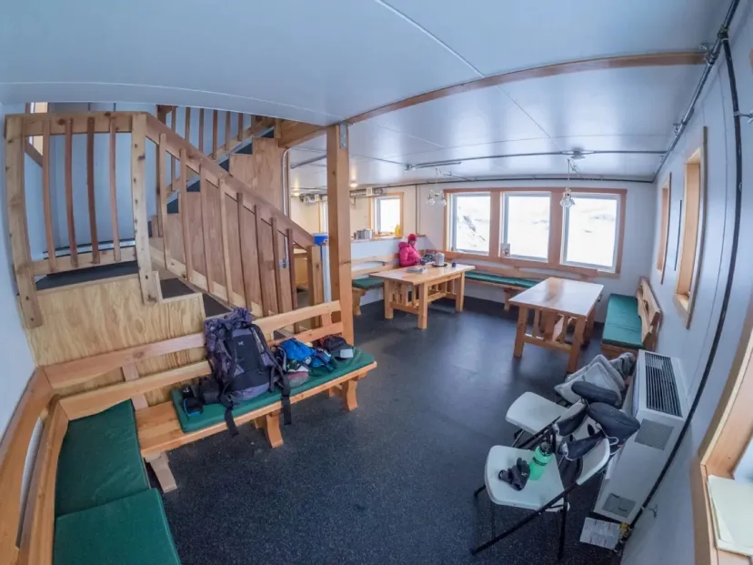 Location: On the toe of the Vulcan Glacier on the Wapta Icefield in Banff National Park. Access to the hut requires glacier travel. Operated By: Alpine Club of Canada Best For: Mountaineering, ski touring Sleeps: 16-18 Booking: Reservations required. Book online . Non-members can reserve 90 days in advance. ACC Members can reserve 180 days in advance. Cost: $60/person/night for non-members. $50/person/night for ACC members. More Info : Alpine Club of Canada and Banff National Park .