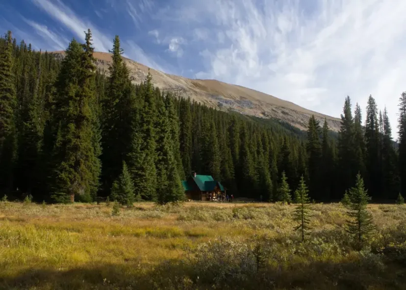 Location: At Cameron Lake in the southwest part of Waterton Lakes National Park. Operated By: Alpine Club of Canada Best For: Ski touring, ice climbing Sleeps: 8 Booking: Reservations required. Book online . Non-members can reserve 90 days in advance. ACC Members can reserve 180 days in advance. Closed in summer. Cost: $60/person/night for non-members. $50/person/night for ACC members. More Info : Alpine Club of Canada