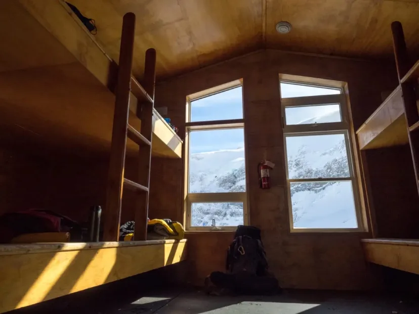 Location: Halfway up the south face of Castle Mountain. Access to the hut requires scrambling and technical rock climbing. Operated By: Alpine Club of Canada Best For: Rock climbing, mountaineering. Sleeps: 6 Booking: Reservations required. Book online . Non-members can reserve 90 days in advance. ACC Members can reserve 180 days in advance. Closed in winter. Cost: $60/night for non-members. $50/night for ACC members. Bookings are for the entire hut. More Info : Alpine Club of Canada and Banff National Park .