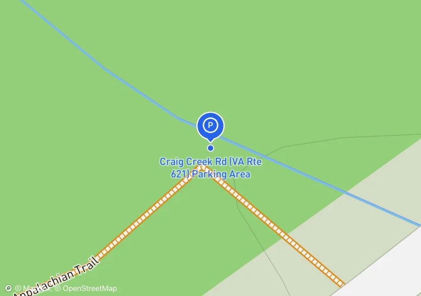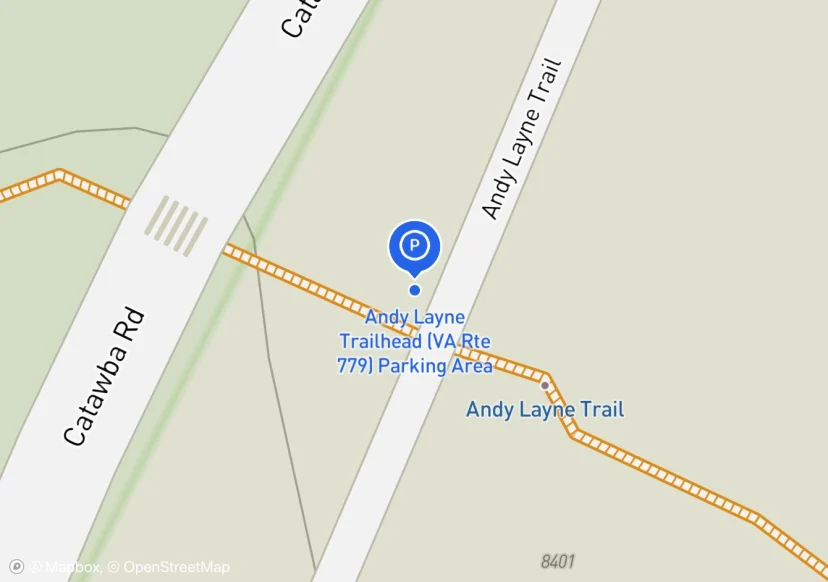 Parking Area for Catawba Greenway Side Trail, located at 5061 Catawba Creek Road. Maintained by Virginia Tech