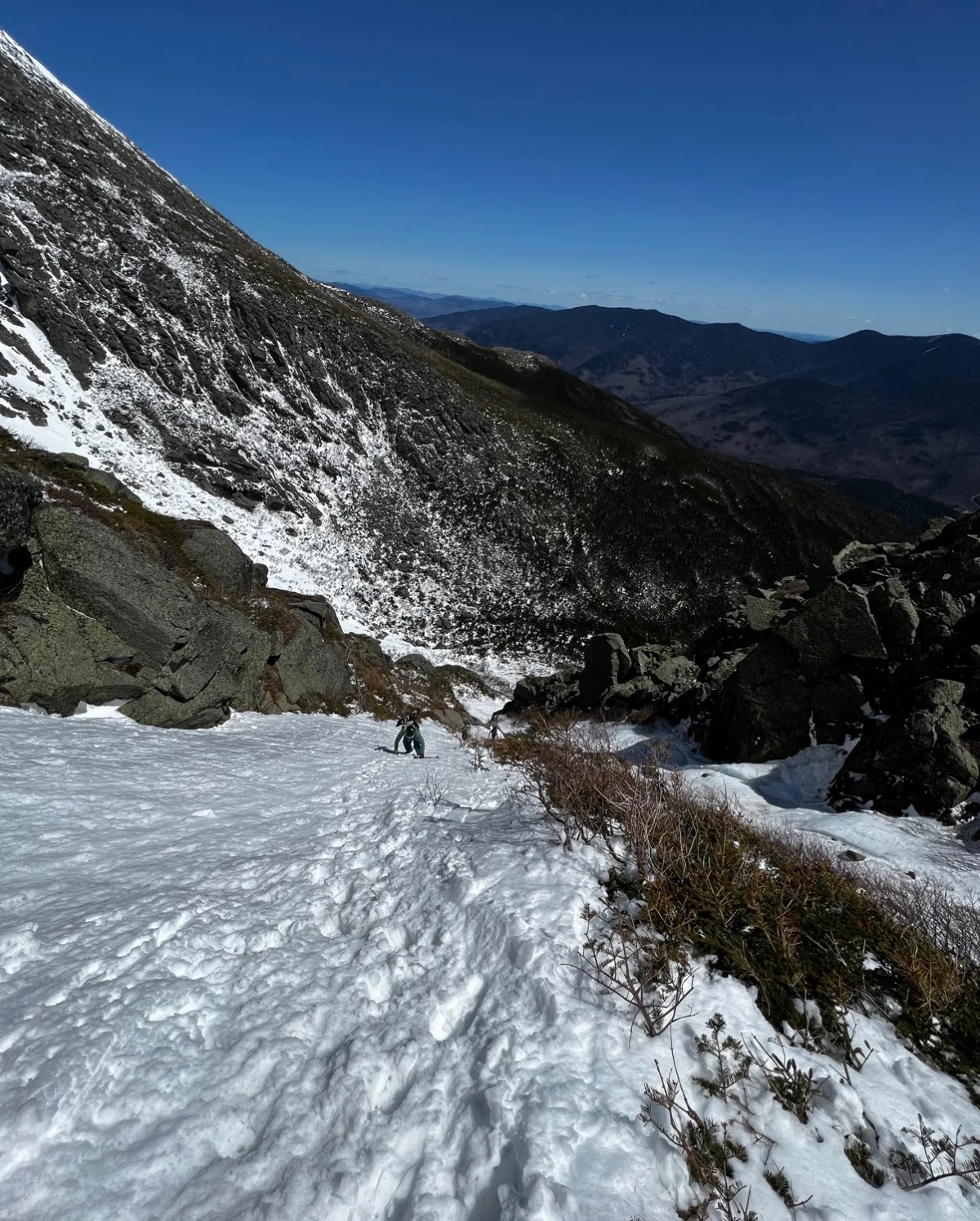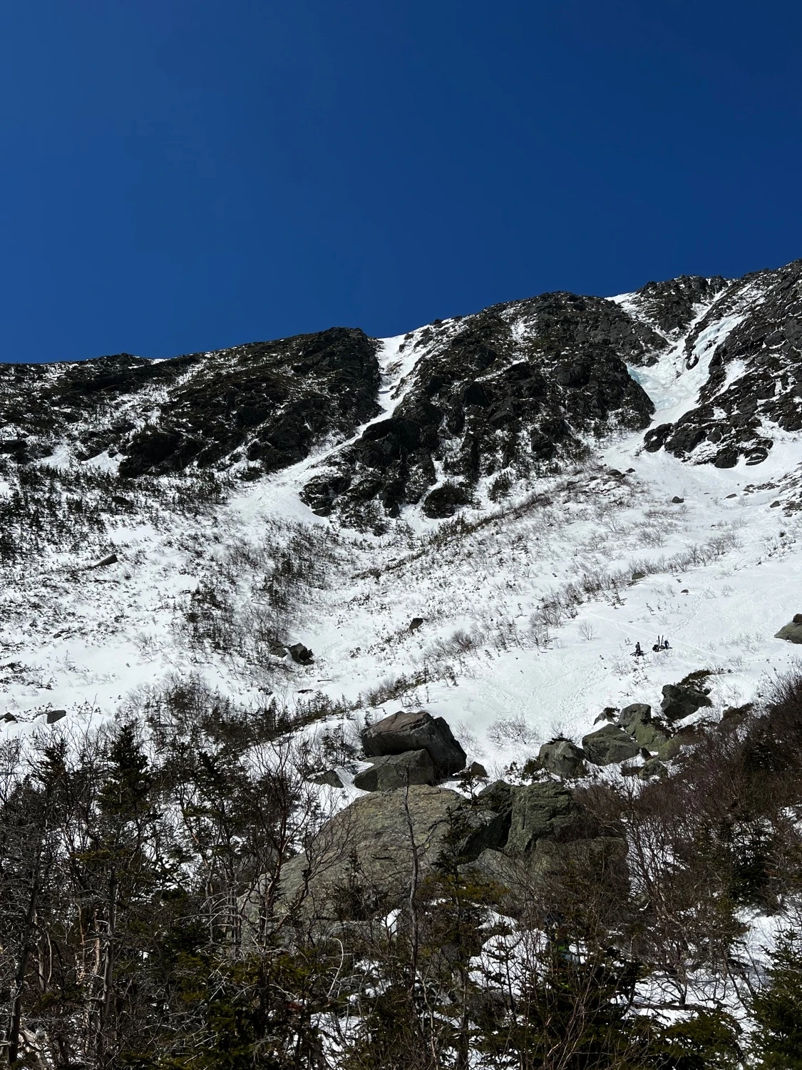 A step up from Escape Hatch, and a step down from Central and Diagonal. This is a great intro to the bigger lines in Huntington Ravine. South Gully is the comma shaped gully on the left side of the ravine. In thin conditions some light bushwhacking can be necessary to reach the runout. Enter the walls of the gully and bootpack up steep snow to the top. South Gully begins with steep turns in a deep gully, about half way down, it’s necessary to traverse skiers left into a side gully to navigate around an ice bulge. Join the bottom of the gully and ski out to the runout.