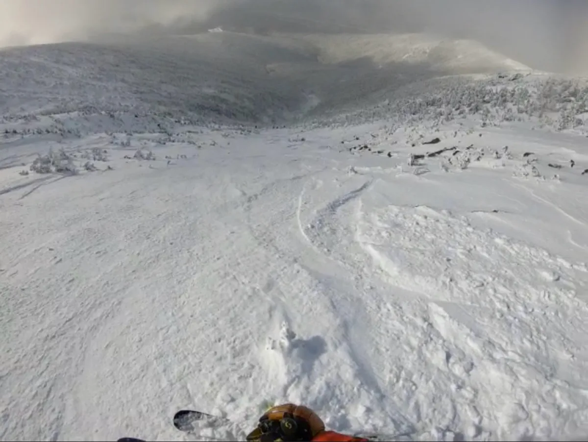There are a number of entrances to Burt South. You can enter from The Cog, or ski directly in from the ridge. Ski any of the long gullies into the bottom of the drainage, and follow it until you reach a landslide to skiers left. This makes a fun bonus lap, but also serves as the standard exit. Put your skins on and ascend the slide to the top, then contour back to the Cog Railway. Alternatively, you can continue to follow the brook out to the Jewell Trail. Only do this in deep conditions and expect bushwhacking and other adventure shenanigans.