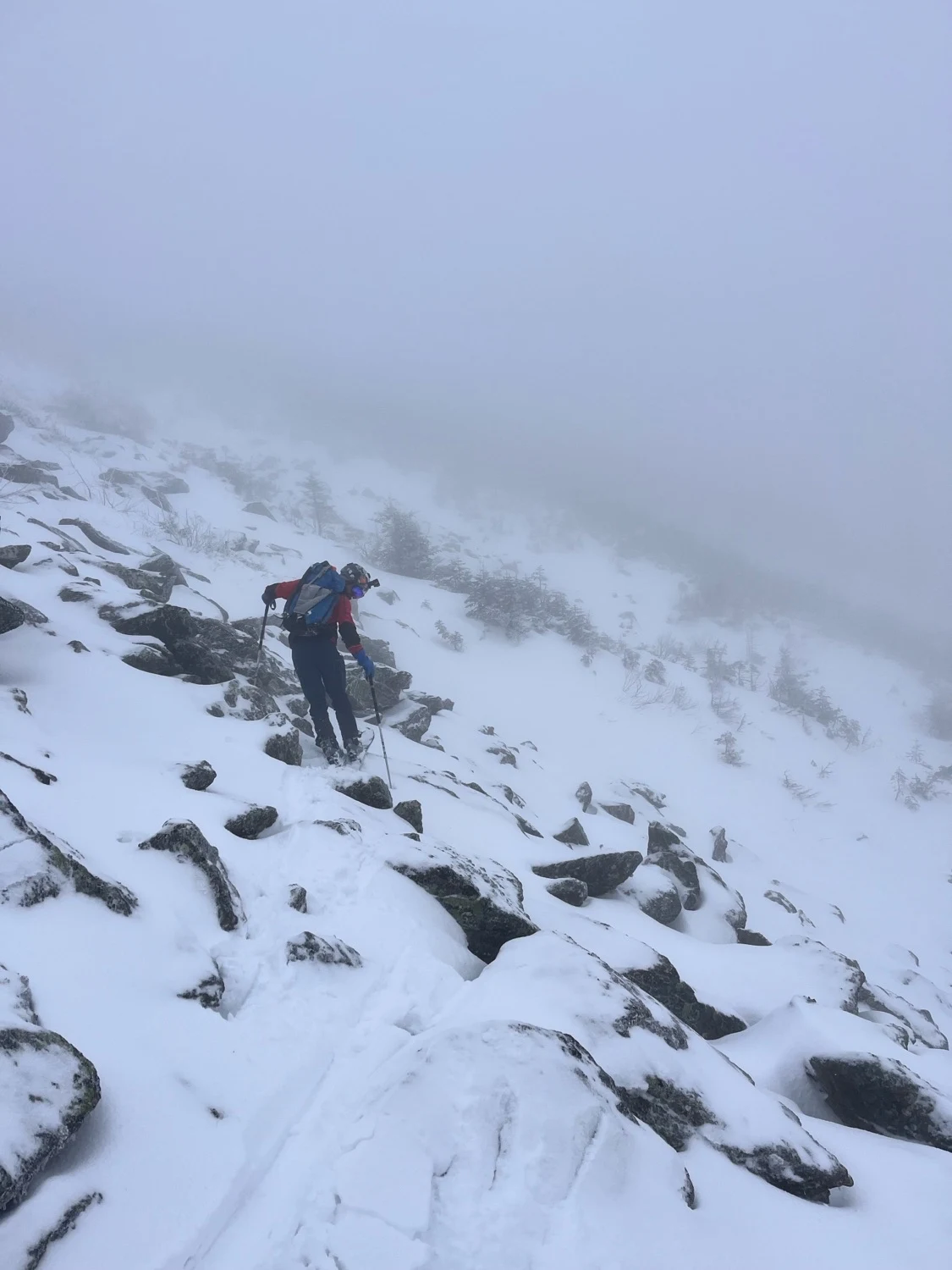 If you still want to explore this branch of Burt, skin up the Jewel Trail until just below Mount Clay. Pick your way through a talus field to a promising upper gully. A few nice turns quickly blend into heinous bushwacking. Fight your way into the creek and follow it to where you’ll emerge into an open patch. Here. A landslide on the skiers left wall merges into the drainage and opens up a section of good skiing, until you reach a waterfall. Bushwhack to the left to avoid it, then follow heinous bushwhacking through a low angle creek. Terrain only gets worse until you can exit the creek to the right and ski along side it in the woods. Cross the Clay Brook the skiers left side and try to locate an exit path marked with flagging, until you can join the Jewell Trail again. This line is best avoided unless it’s really filled in.