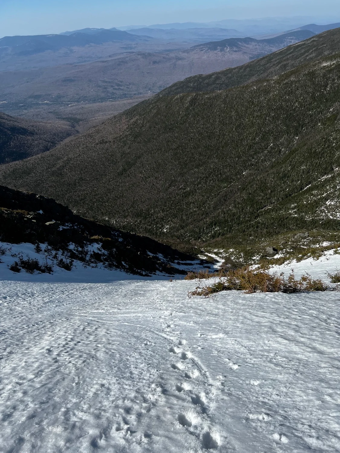 Pick through bushes at the very top, gaining an open chute a little similar to GOS Main.