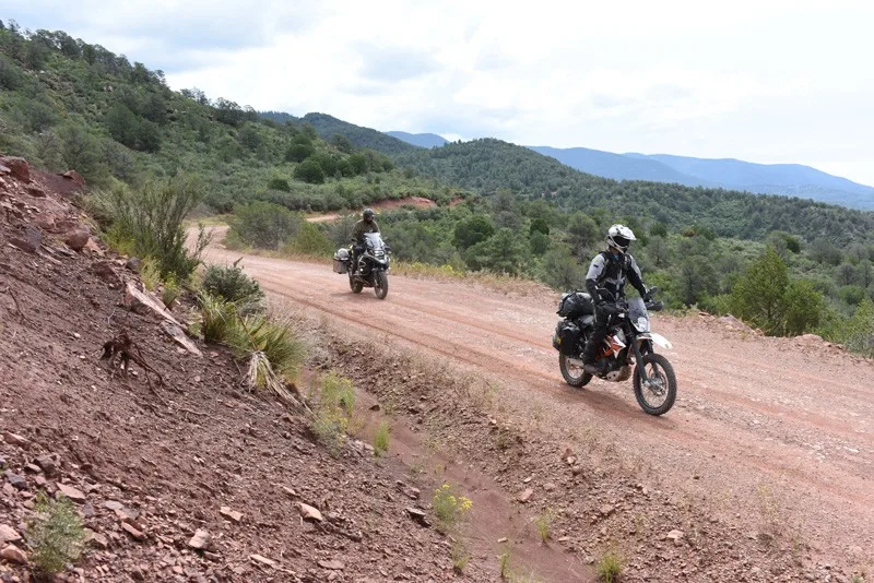 Elephant Butte to Reserve – 162 Miles Launch this section in Elephant Butte, a town that got its moniker from a striking butte in the nearby reservoir. Don’t miss out on the many thermal pools that nearby Truth or Consequences offers – it’s the best way to soak away the aches and pains from a long day in the saddle! The route moves north along the banks of Elephant Butte Lake, which boasts some of the most spectacular camping along the entire NMBDR. After bisecting I-25, the road climbs up and into the Sierra Cuchillo foothills of the Black Range and on toward Wilson. Stock up on fuel and supplies at the General Store and get ready for the optional advanced section through Chloride Canyon, a protracted technical section (you’ll cross Chloride Creek nearly 100 times in this section), before riding up and over the divide to Reserve. This is arguably the most remote part of the NMBDR: if you aren’t a confident and skilled rider, we recommend skirting this section and hitting the pavement for 30 miles instead of riding the dirt. The following 100 miles escorts riders through high-elevation woodland, breathtaking scenery, and fast, rhythmic double-track. Pristine freshwater lakes accent the entire journey – pick a pool and take a quick, invigorating dip to clear your head for the rest of the trip.