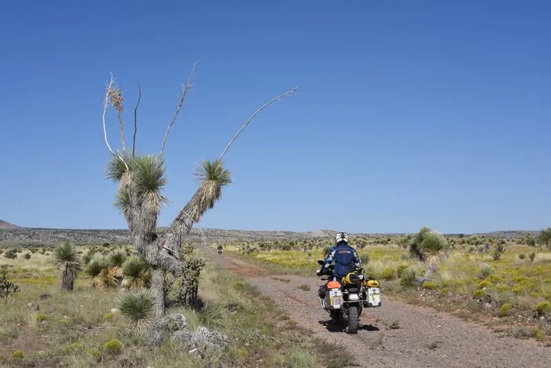 Carrizozo to Elephant Butte – 155 Miles Not long after a short jaunt on US Highway 380, the pavement changes to dirt and begins to turn north by way of a spectacular double-track. Take it ALL in, this is New Mexico at its finest! Please note: there are private ranches in the area – a safe and respectful speed is imperative to avoid losing the privilege of riding such a remarkable section. Regain the highway about 35 miles down the road and head west and then south toward the White Sands Missile Range. This lengthy, quite sandy passage is appropriately named ‘Jornada del Muerto’ (Route of the Deadman) as there are no amenities for the next 105 miles!