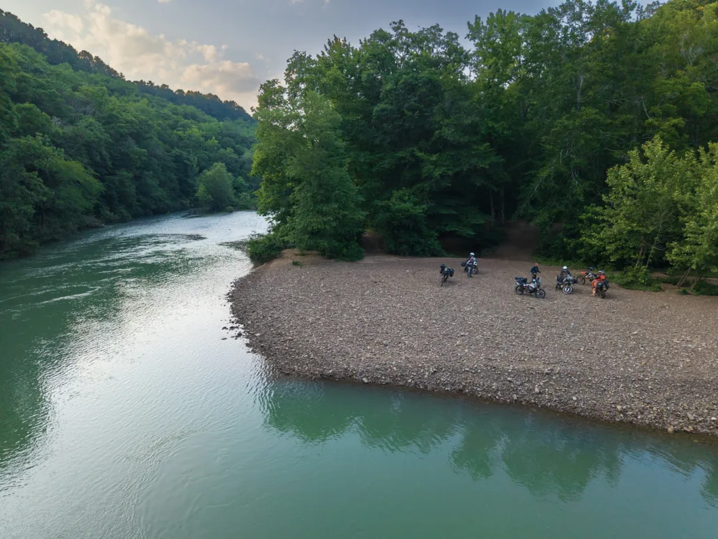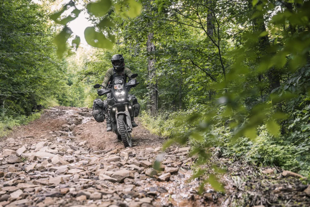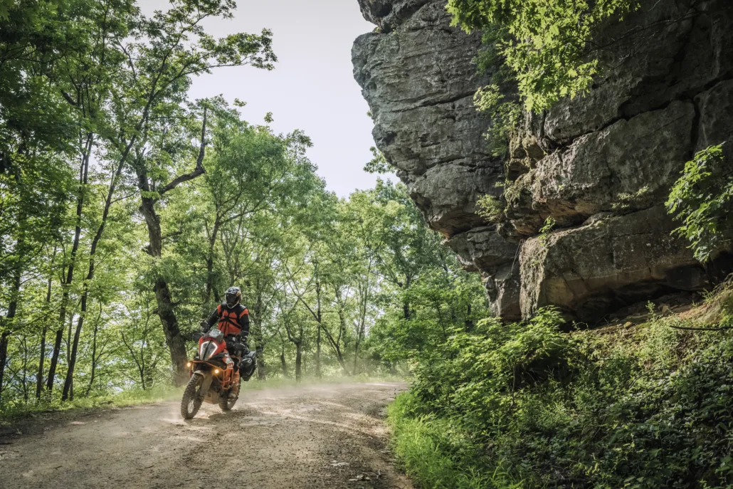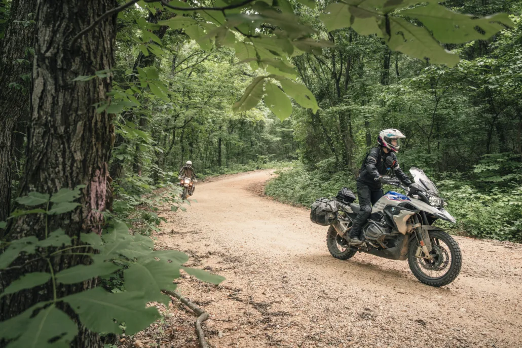 The Ozarks BDR-X is a 480-mile backcountry adventure route through the Ozark–St. Francis National Forest in northwest Arkansas. Riders will experience some of the very best riding in The Natural State, traveling through dense, lush forests, crossing pristine rivers, passing towering rock cliffs, and carving through scenic twisty pavement.