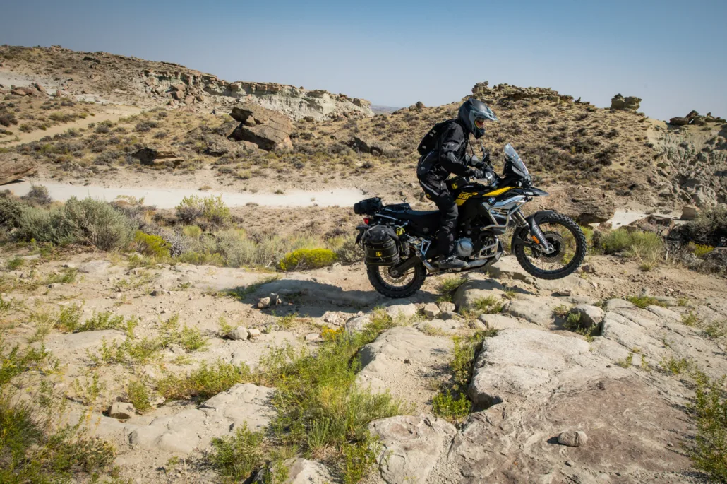 After riding tarmac north from Baggs for 22 miles on Hwy 789 the route turns west onto dirt roads that give a little insight into Wyoming’s vast mining and extraction industries. Continue on these roads with their intermittent deep sand, ruts and rock ledges for another 30 miles and the reward will be an area known as Adobe Town. This geological region is filled with sandstone towers, valleys, hoodoos, and more. It’s a perfect spot to stretch your legs, get your cameras out and explore this gorgeous Wyoming treasure. It’s also a good opportunity to hydrate and take a lunch break. Always remember to ride respectfully and leave no trace.