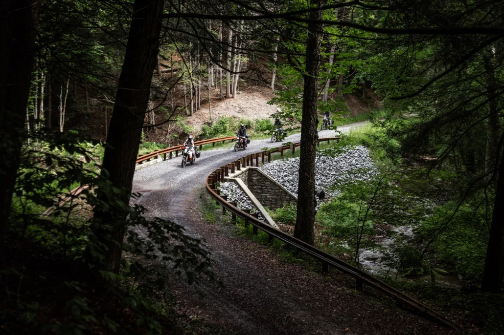 Weedville to Milroy – 165 miles Section 3 begins in the beautiful Moshannon State Forest with meandering gravel roads exploring some of the sharp valleys cut by the tributaries of Sinnemahoning Creek. Back on the pavement, the track leads you across the West Branch Susquehanna River, under Interstate-80, and into the smooth and flowy gravel roads of the Black Moshannon region. Consider packing a bathing suit and take a dip at the Black Moshannon Lake Beach. Stop at the Sleepy Hollow Outpost while you’re there to grab a milkshake or a cheeseburger as well as some local souvenirs. The amazing zigging and zagging gravel roads of Rothrock and Bald Eagle State Forests are the perfect end to this leg of the PA Wilds BDR-X. The Appalachian Mountains in the southern section of this BDR-X are more drastic, jutting up in a tighter wavelength and steeper grades than its more northern sections. Some of the most picturesque vistas and valley views are littered along the dirt and gravel roads of Rothrock and Bald Eagle State Forests before reaching the town of Milroy.