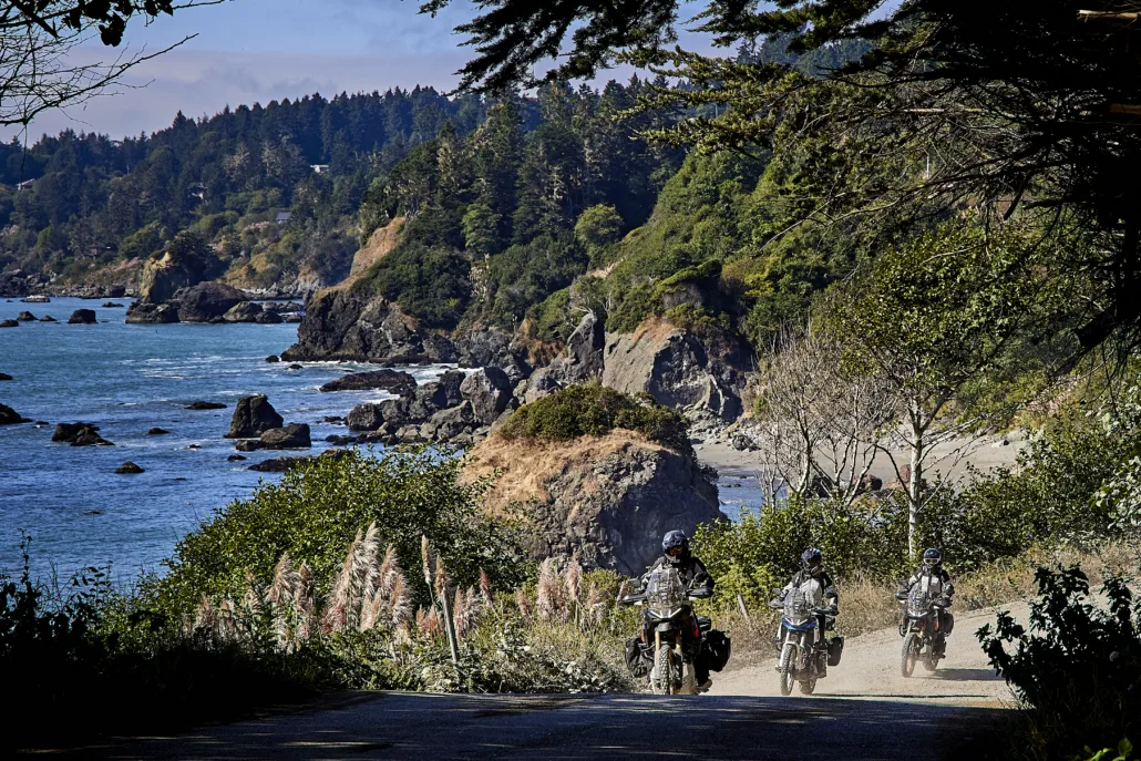 FORT BRAGG TO SHELTER COVE – 63 miles Fort Bragg makes the perfect start to your adventure with ample lodging and food options. Before you leave town, stop at Glass Beach for a short walk to this iconic spot where you can search for tumbled glass pieces washed upon the shore. As you head north along Highway 1 you’ll instantly get a sense for the stunning views of the Pacific Ocean that lay ahead as you meander along the breathtaking California coast. Usal Road is the first taste of dirt as you ride along a primitive forested two-track with a few great views of the coast. While generally mild, this road can be particularly challenging at times, especially after a storm and is considered impassable when wet. Stop by Usal Beach, which features a campground, a wide sandy shoreline, and often a herd of elk. Be sure to park where the beach road is firm and not sandy. Take a side trip to the Needle Rock Visitor Center and keep an eye out for herds of elk in this wildlife preserve before the last stretch of primo riding into the quaint town of Shelter Cove. Note: The northern section of the Usal Road is typically closed for the winter and usually opens for the season right before Memorial Day weekend, depending on weather conditions from the previous winter. Check the County of Medocino’s Department of Transportation website for road closures and delays.