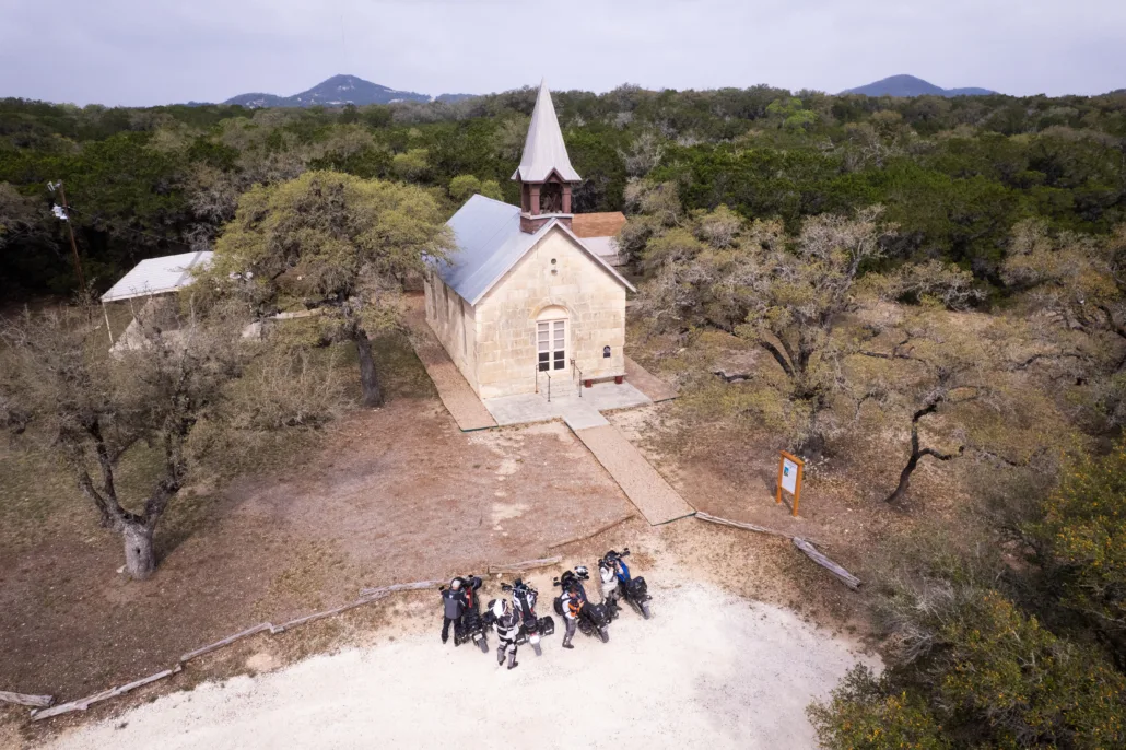 FREDERICKSBURG TO LEAKEY – 143 miles Kick off your adventure in the charming town of Fredericksburg, located in the center of Texas wine country. The first stop of the day is at historic Luckenbach, (get a picture of your bike in front of the post office) followed by some superb backcountry twisties along Grape Creek, Bear Creek, and Center Point Roads. Be on the watch for deer as they are everywhere in the Hill Country and will dash right in front of you. Take a stop at historic Polly’s Chapel, built in 1879, and head through Bandera, “The Cowboy Capital of Texas”. The second half of today’s route introduces you to slick and exciting low water crossings that are abundant in the Texas Hill Country, so take them slow. You will end the day in Leakey after riding the best sections of RR 337, one of the famed “Three Twisted Sisters” (RR 335, 336, & 337).