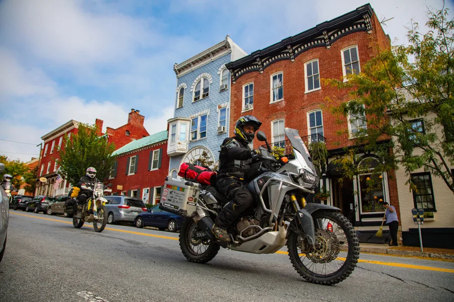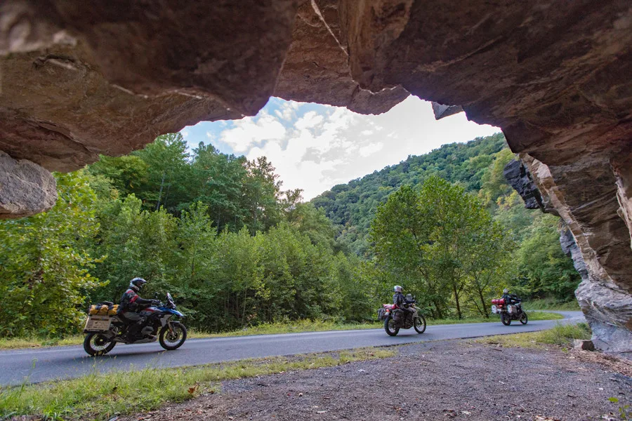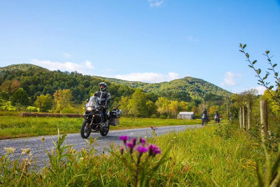 WARM SPRINGS, VA TO MOOREFIELD, WV – 172 miles While in Warm Springs we recommend treating yourself to the crystal-clear water that bubbles up to the surface from deep underground. This healing water has been luring folks for generations. North of Warm Springs the dirt roads are far twistier than any previous ones you’ve confronted – you’ll be riding over mountains and ridgelines that seem to go on forever. If you’re up for a little added challenge, take the optional harder track on Hite Hollow Road and make your way to the Brandywine General Store for fuel. For the remainder of the section, enjoy riding ranges on flowing one-lane blacktop and constricted canyon-lined byways. Smoke Hole Canyon is especially thrilling given the pulsing South Branch of the Potomac River running beside it. Smoke Hole Caverns & Resort is a great place to rest for the night.