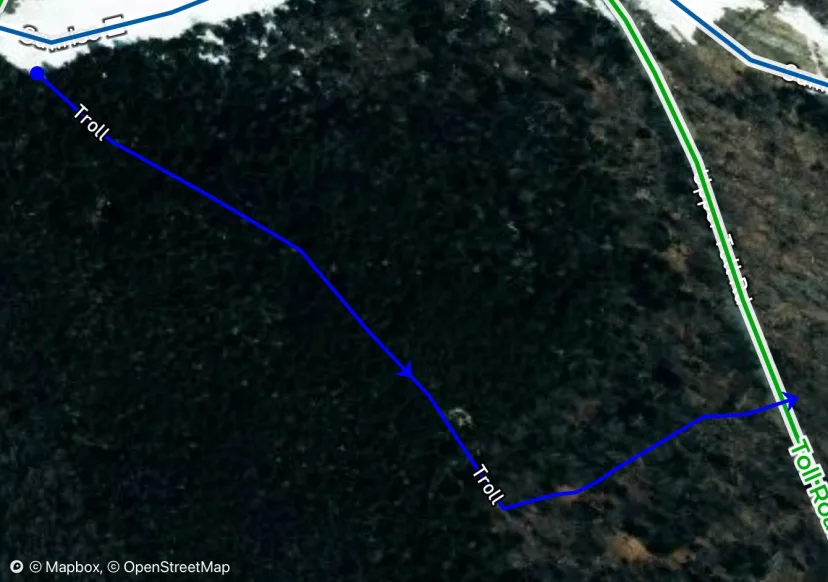 According to Kim Brown, this line was cut in the 1990s by a local named Jeffrey, as an alternative powder stash to the now busy glades of the Front Four. Take the long traverse into the woods that’s obvious to skiers right of Sunrise. Crest over a knoll into a a short chute. It opens up into a wider glade briefly before spilling out into Toll Road.