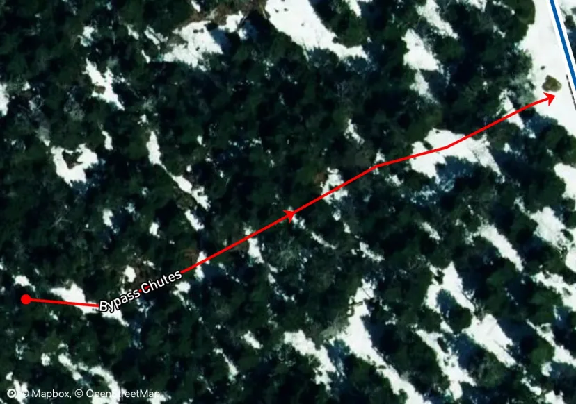 The earliest drop in off the traverse, these woods are less technical than the chutes and provide direct access to Nosedive Glades. Ski in the second entrance to skiers left off of bypass, the first leads to a weird turn usually sporting an ice bulge. Drop immediately into the woods and enjoy steep conifer glades down to Rimrock.