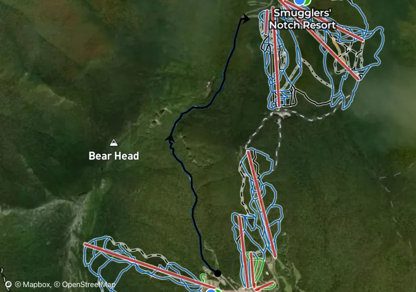 An excellent little sidecountry stash at Smuggs. Wide open woods and a remote feel for being so close to the trail. Ski back from the top of Sterling Peak to gain access to the long trail, follow this north to summit a small knoll. From there you can traverse into the woods and locate a series of drop ins. Short isles lead to a patch of wide open woods, until you cross Shuttle. From here you can pick up Lower Hershey.