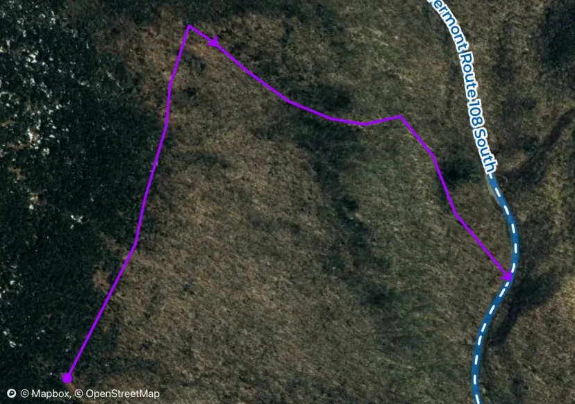 This can be a walked or skinned up to approach a variety of lines. Hike up past the backcountry sign and trend low angle ground. The first landmark you’ll pass is the entrance to Stu’s Chute at a big clearing beneath the road. Beyond that. Any ski routes are obscure and hard to follow, until you pass the entrance for the Amherst Trail, which provides access to the Amherst Chute. Beyond that you’ll pass the long trail, which provides access to Hundred Inch Chute from the quad side. After passing the long trail, you come around the backside of The Nose. You’ll pass the Long Trail again, providing access to the Tear Drop from the Stowe Side. If heading for The Nose, keep going until you reach the final uphill to the summit. You’ll pass a variety of cell tower related buildings. From here you can follow a very narrow trail to Old Nosedive, or saddle up and ski The Booger.