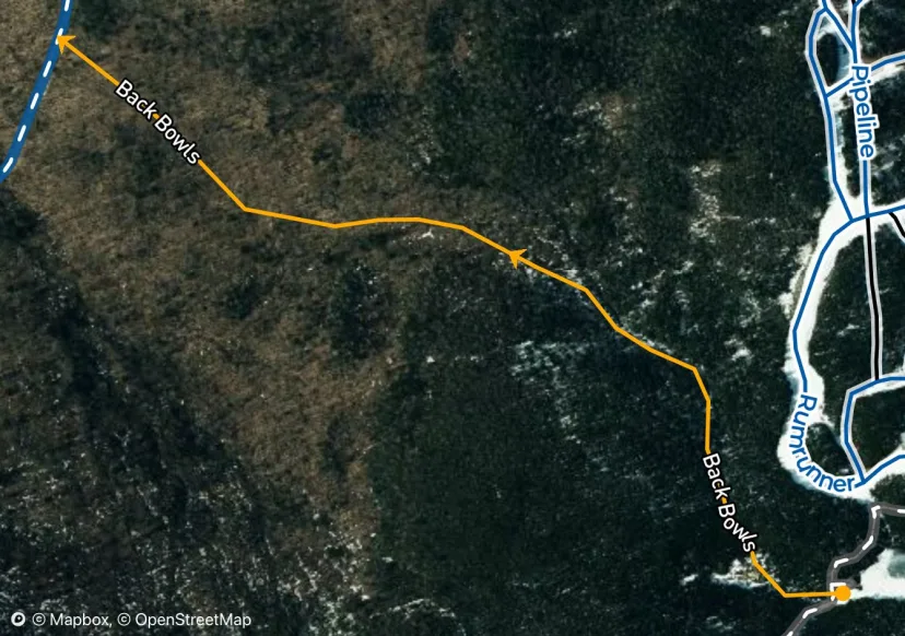From the dog leg of Ridge Run, ski straight into the woods. A steep section that can be thin cover, drops down to rejoin Side Street.