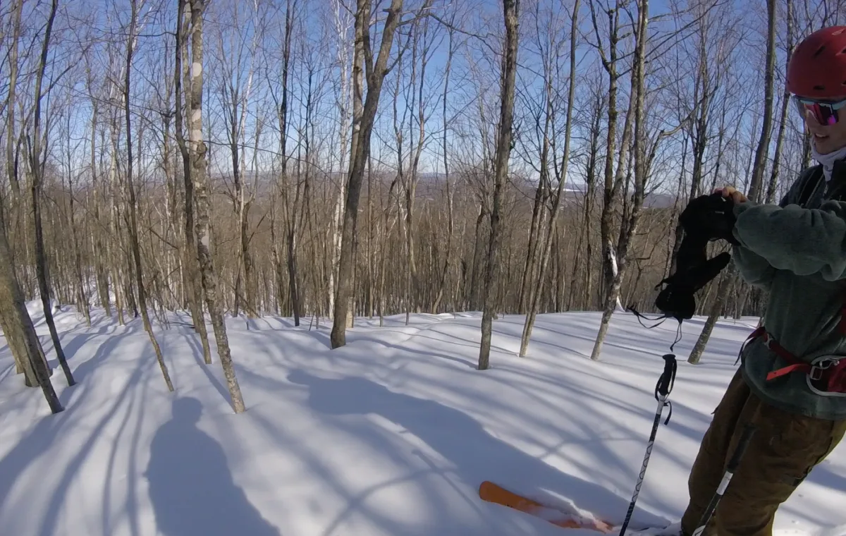 Tight glades at a moderate pitch, if you stray too far right you will end up on the snowmobile trails that lead back to Big Moose